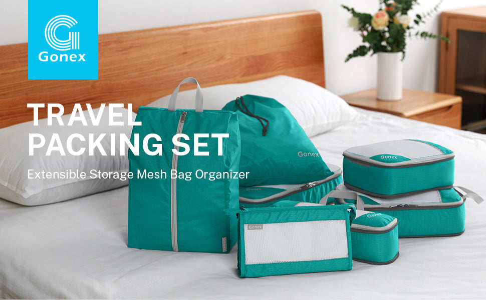 Complete Travel Packing Set: The Gonex Compression Packing Cubes 7Pcs Set has you covered with various sizes for all your packing needs. This set includes large, medium, small, slim, a laundry bag, shoes bag, and toiletry bag, ensuring you have the right cube for every item.