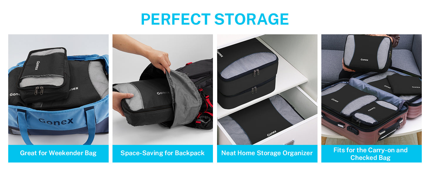 Your Ultimate Travel Companion: Whether it's a family vacation, business trip, outdoor escapade, or daily storage, Gonex packing cubes are your versatile travel companion. Elevate your travel essentials and experience the joy of organized and stress-free journeys.