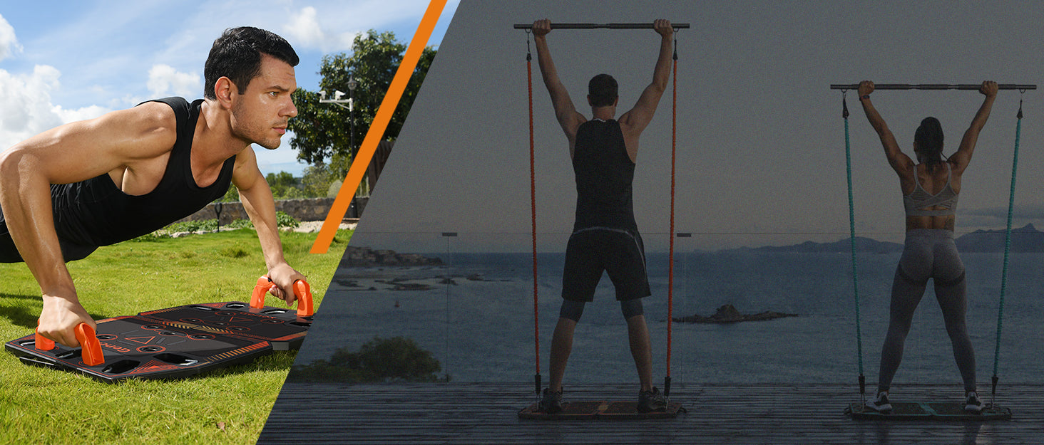 ALL-IN-ONE HOME GYM EQUIPMENT SYSTEM: Gonex Training Base is used with various workout equipment attachments: Post Landmine Sleeve, Push-up Handle Bar, Ab Roller,3-section Bar and 30lbs/50lbs Resistance Bands, which can fulfill most of your workout needs for the bulky equipment and machines in the gym. Gonex portable gym makes fitness more affordable and lived anywhere.