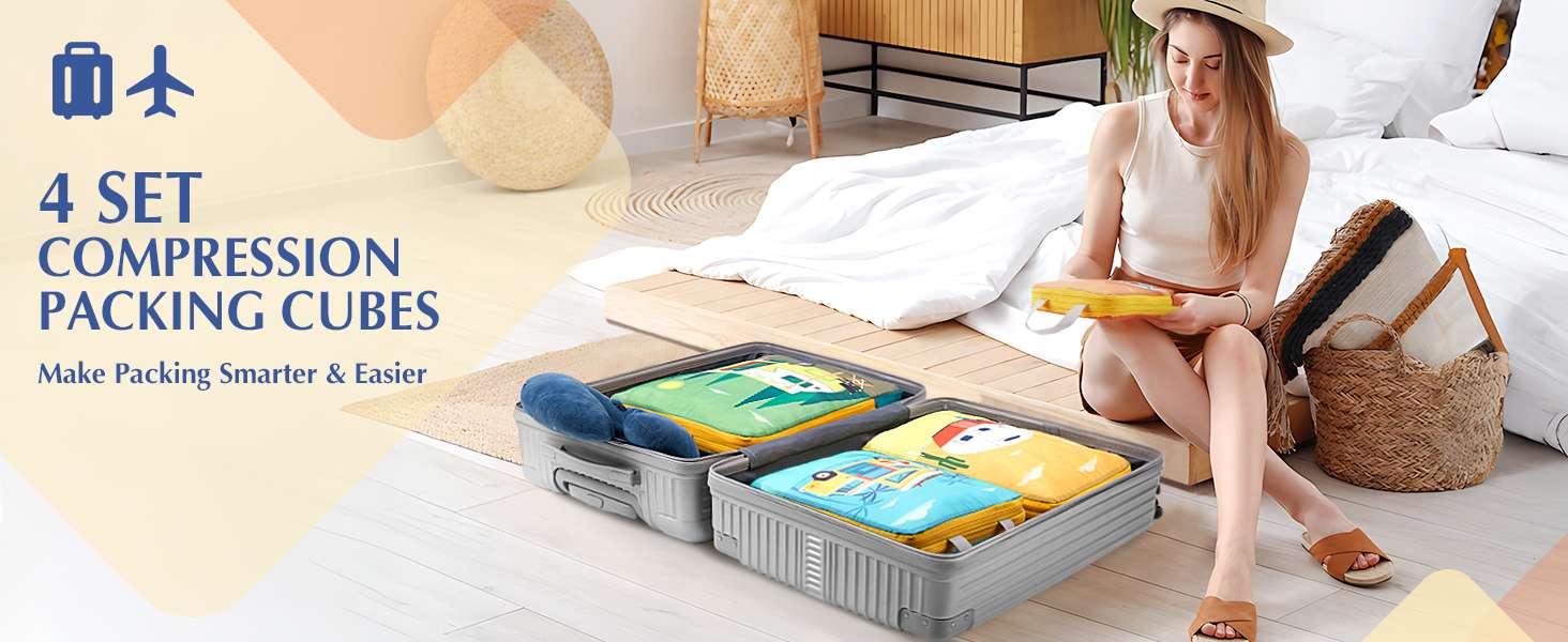 - KEEP ITEMS NEAT & ORGANIZED: These compression packing cubes help you stay organized by neatly arranging your clothes. These Gonex packing cubes feature delightful and colorful designs, each piece in the set showcasing a different RV illustration.