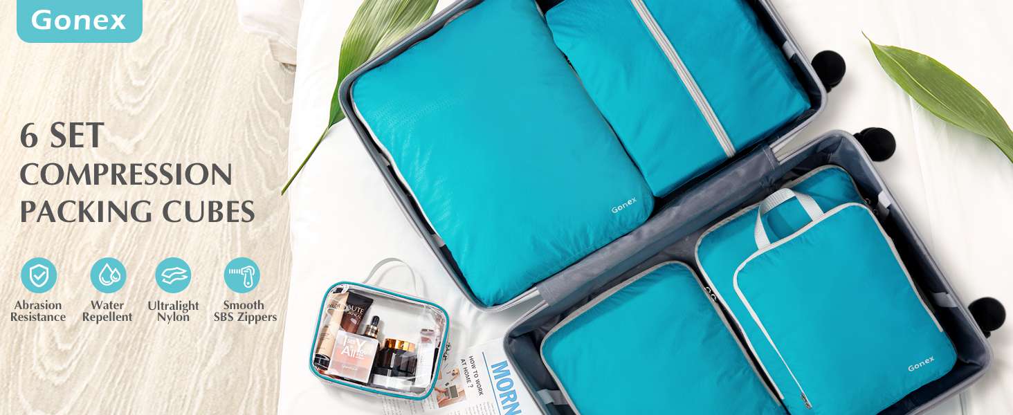 Gonex Kompressionspackwürfel verfügen über Doppelreißverschlüsse, die Kleidung im geschlossenen Zustand komprimieren. Diese Kompression hilft, bis zu 30 % Platz in Ihrem Handgepäck oder Reiserucksack zu sparen, und macht sie ideal für maximale Packeffizienz.