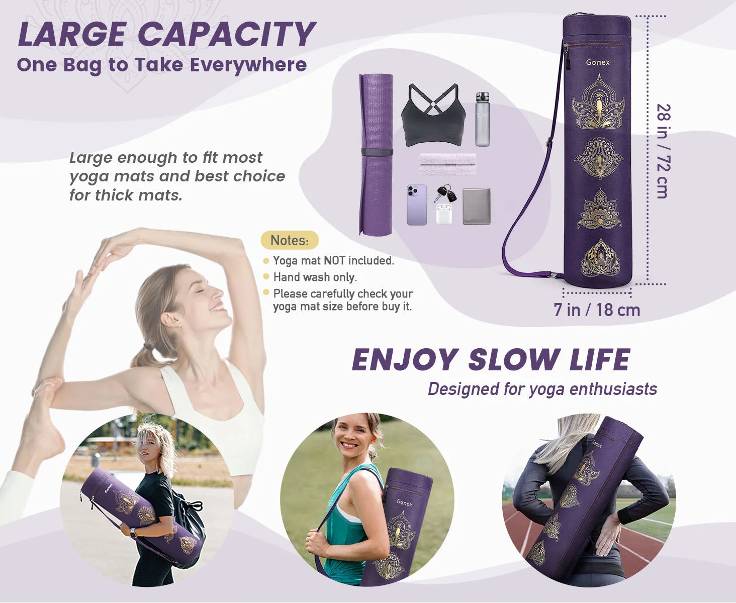 Die Gonex Yogamatten-Tasche ist auf Komfort und Bequemlichkeit ausgelegt. Es verfügt über ein Design mit durchgehenden Reißverschlüssen, das das Einsetzen und Herausziehen Ihrer Yogamatte erleichtert. Der Schultergurt ist auf eine individuelle Länge verstellbar und sorgt so für einen bequemen Tragekomfort. Durch dieses Design haben Sie beim Gehen ins Yoga-Studio oder Fitnessstudio die Hände frei und können bequem und bequem getragen werden.