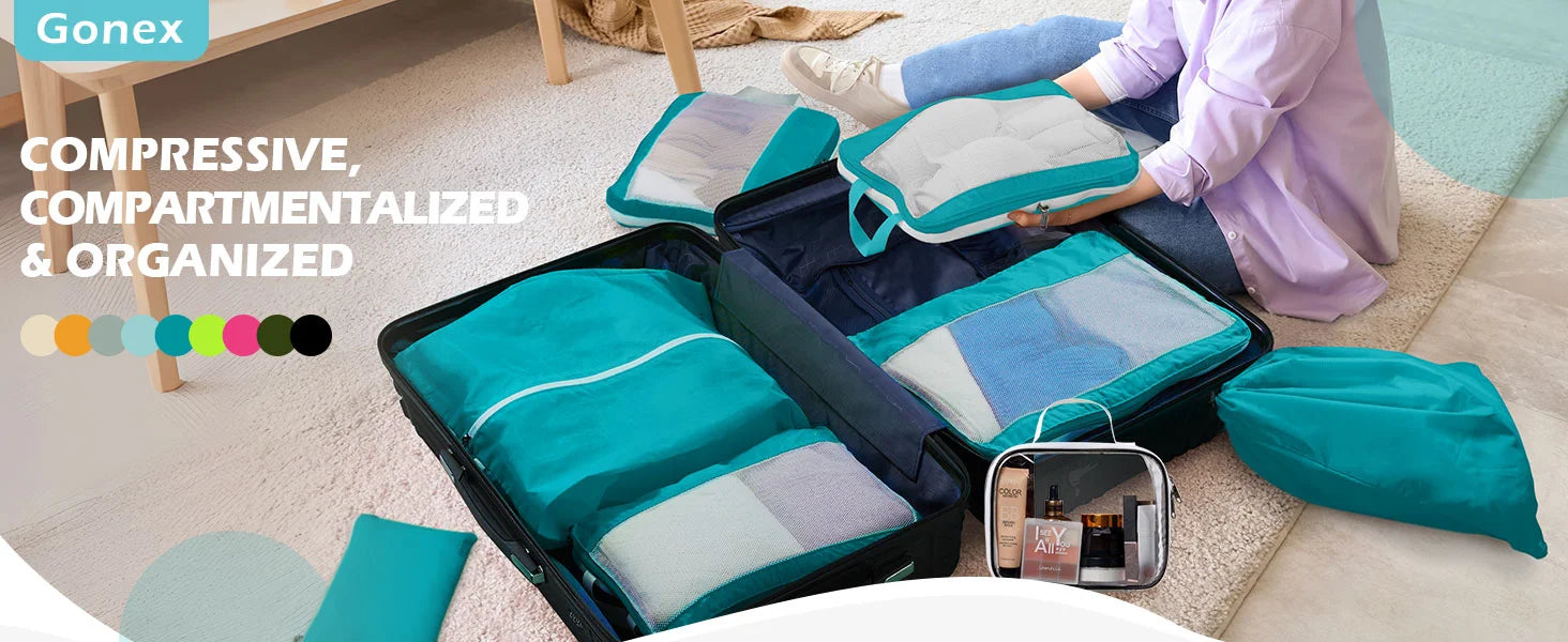 - Vielseitig und praktisch, diese Kompressionswürfel sind perfekt für jede Reisesituation . Von Familienurlauben und Geschäftsreisen bis hin zu Campingabenteuern im Freien, Gonex hat alles, was Sie brauchen. Sie eignen sich auch hervorragend für die tägliche Aufbewahrung, damit Sie Ordnung in Ihrem Kleiderschrank halten und Ihre Reiseutensilien jederzeit griffbereit haben. Erleben Sie die Freude am effizienten, stressfreien Packen mit den Kompressionspackwürfeln von Gonex.